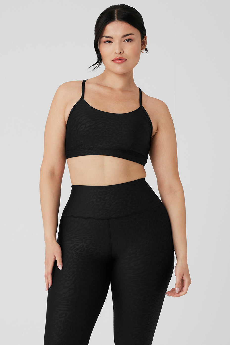 The Airlift Leopard Debossed Intrigue Bra is made in our signature, lifting & smoothing Airlift, with a fierce and playful performance leopard print. A keyhole cutout at the back and adjustable, crisscrossed straps boost this style*s studio-to-street appeal. Go wild head-to-toe with the matching Airlift High-Waist Leopard Debossed Leggings.