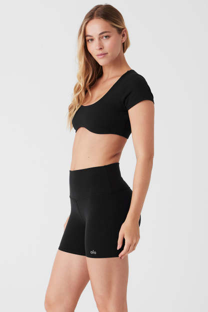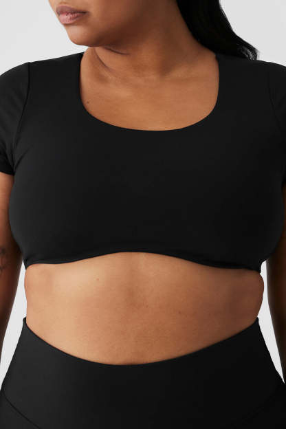 - Cropped short-sleeve bra with a curved underbust hem