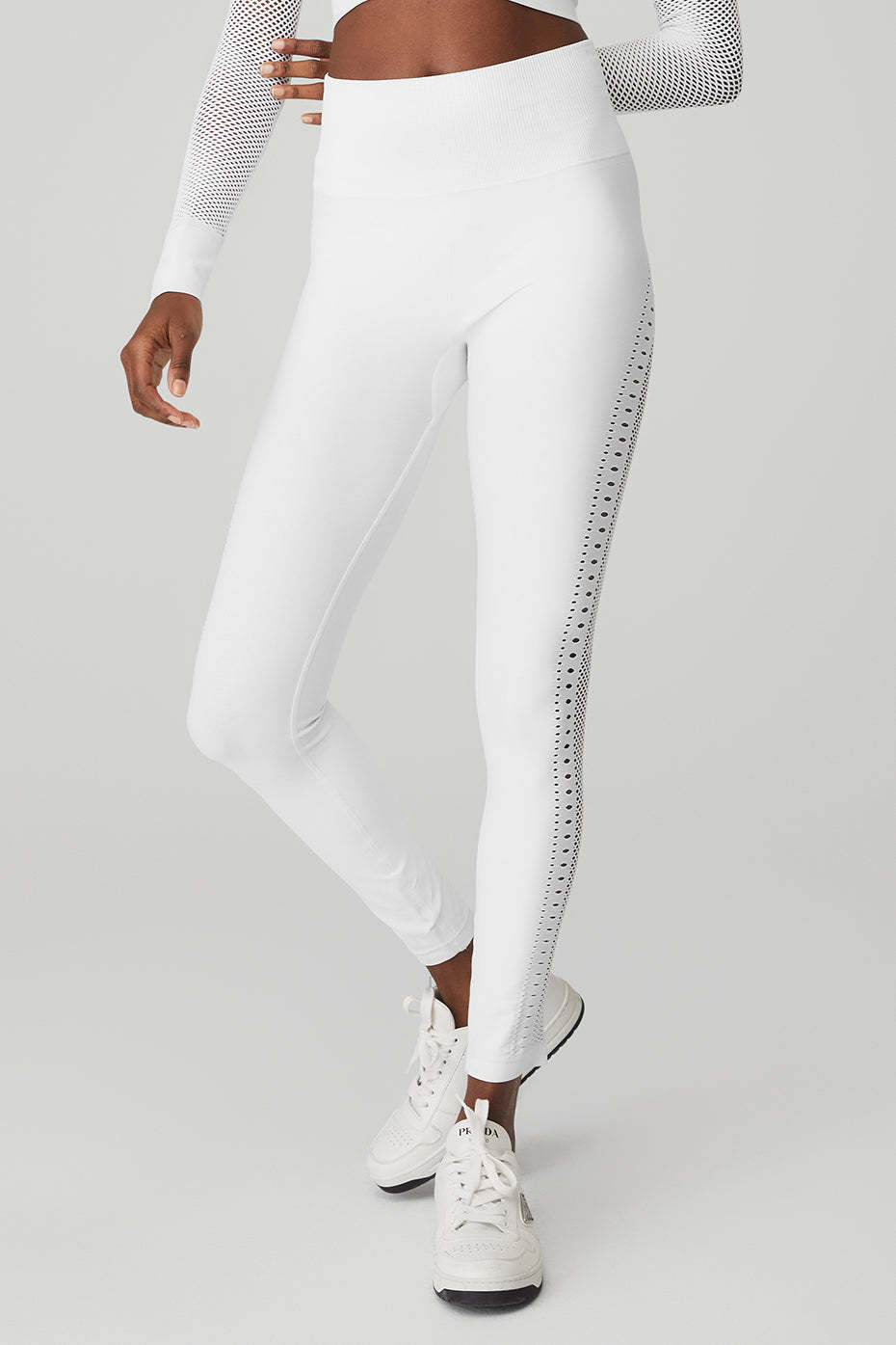 The thigh*s the limit with these epic leggings. We*re obsessed: the new Seamless High-Waist 7/8 Open Air Leggings are the perf balance of wild & wearable with mesh details and cutouts down the sides. Wear them with a fave athelo top.