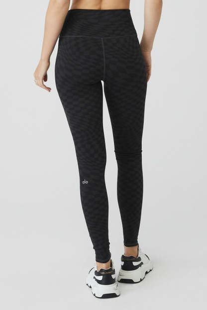 This is our new 24/7 fave. The Jacquard High-Waist Checkered Legging is velvety soft with a bold print for studio, street, and lounging. Pair with the matching bra for a complete set.