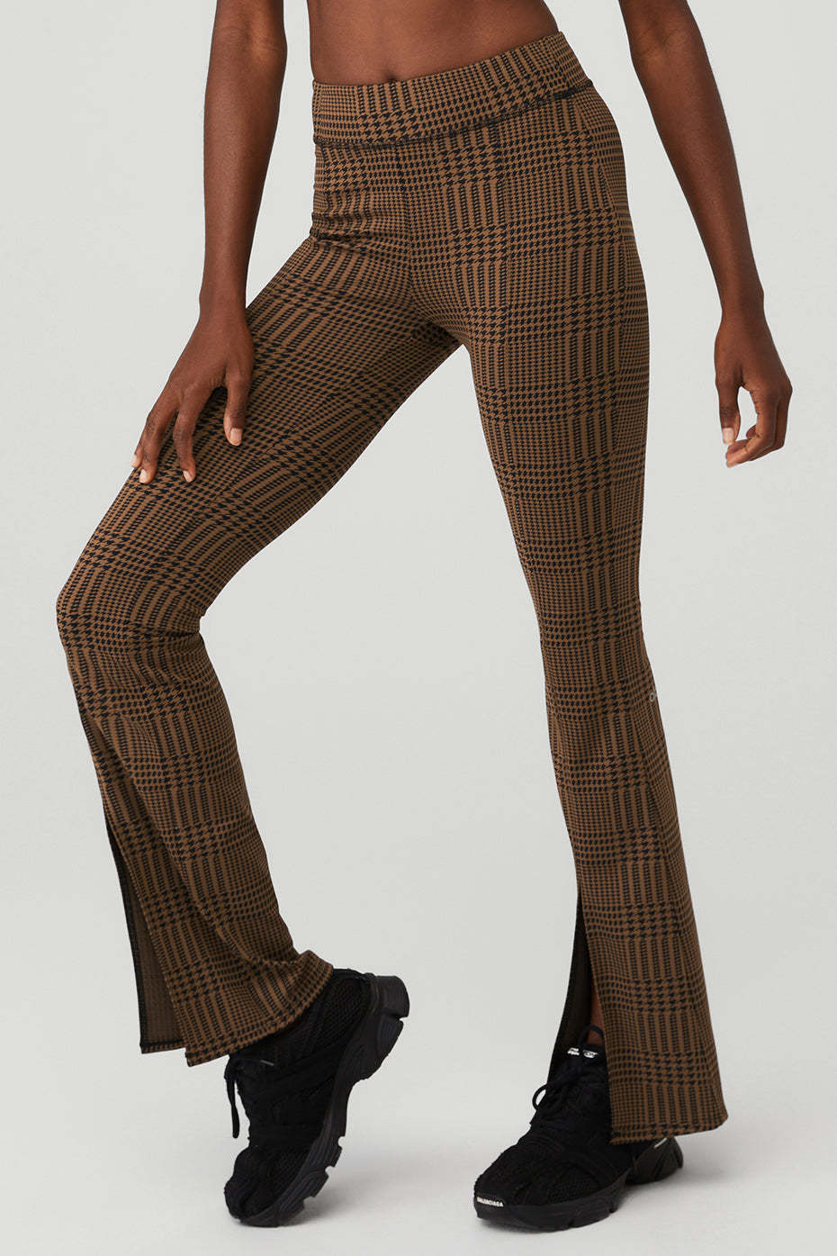 A new silhouette for a new day. The Jacquard High-Waist Glenplaid Flutter Legging is sweet from every angle, with a street-ready plaid print, a skinny waistband and elevated front seams. A flared leg with front split adds extra ventilation (and is great for showing sneakers!), for a forward look that looks so good with a high-neck bra top.