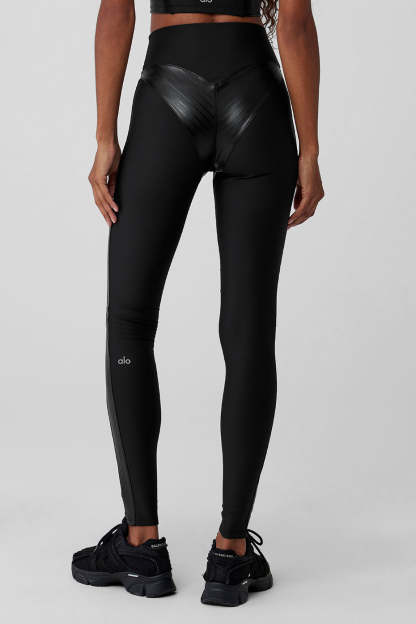 Our Airlift Winter Warm fabric has all the same sculpting, lifting power as our classic Airlift, but it*s finely brushed on the inside for a fleecy feel that creates extra warmth for winter sports and apr豕s hangs al fresco. And that*s not even the best part: peep the moto-inspired seaming and faux leather panels at the sides, knees and bikini-bottom-back. Designed with full-length legs and a flattering high-rise that perfectly complements the coordinating Supermoto Tank.