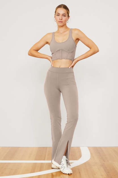 A new silhouette for a new day. The Airbrush High-Waist Flutter Legging in sculpting performance Airbrush is sweet from every angle, with a skinny waistband & elevated front seams. A flared leg with front split adds extra ventilation (and is great for showing sneakers!), for a forward look that looks so good with a high-neck bra top.