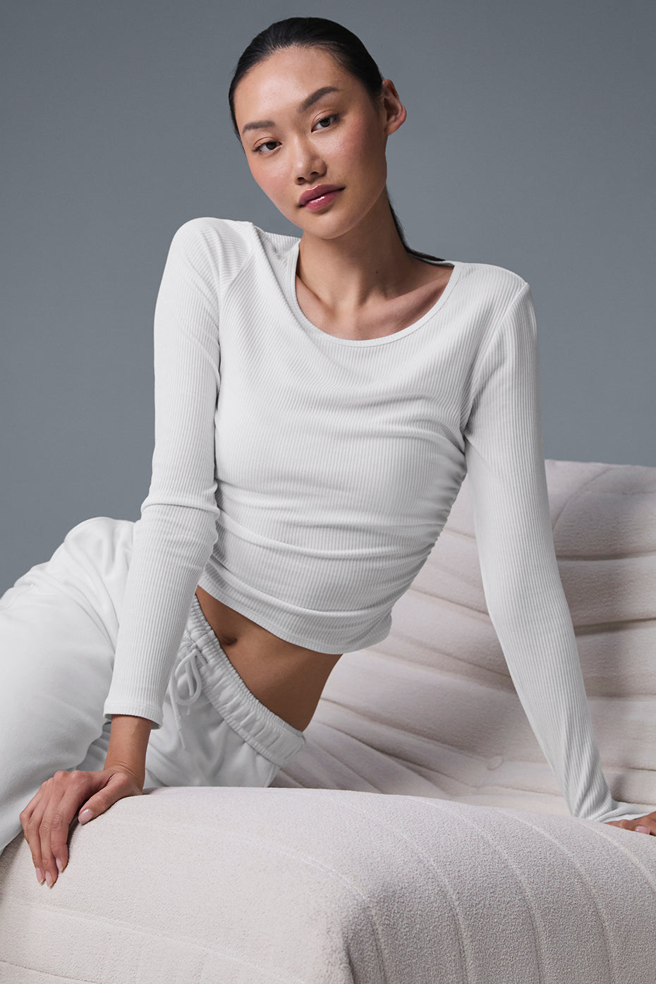 You’ll reach for this top for everything from casual outings to gentle cat-cows. It’s so soft it’s almost silky, slightly sheer and subtly ribbed for extra style points. Fitwise, it hugs the body with a flattering crewneck, a cropped hem and cute, ruched sides. Pick a hue and pair it with leggings and lounge pants galthtore.