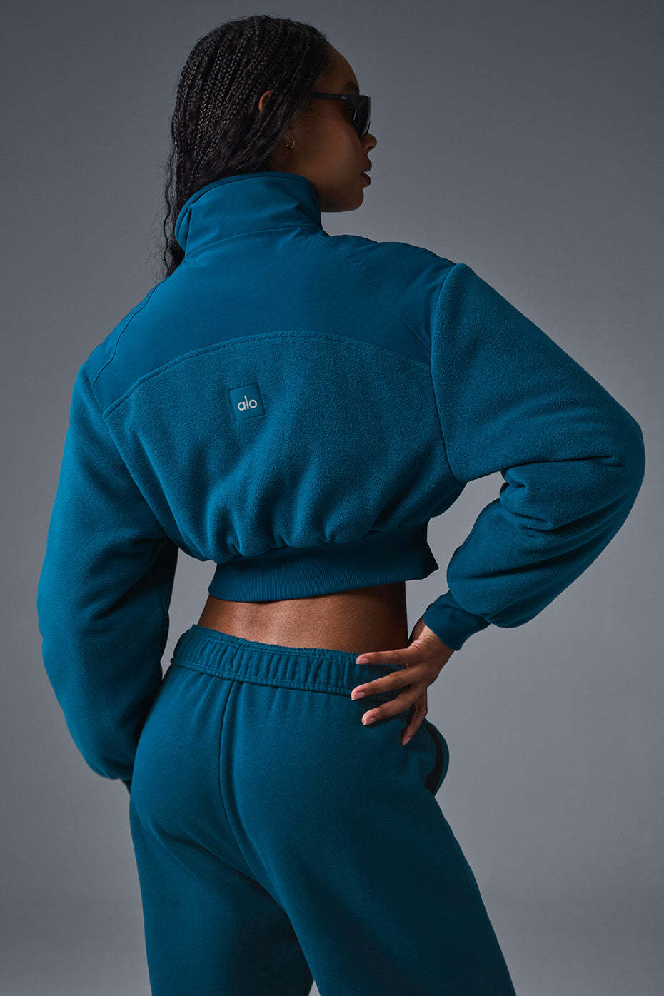 True to size—designed for a slightly puffy silhouette with light fill and a cropped hemUltra-soft, fleecy fabric with smooth, contrasting panels