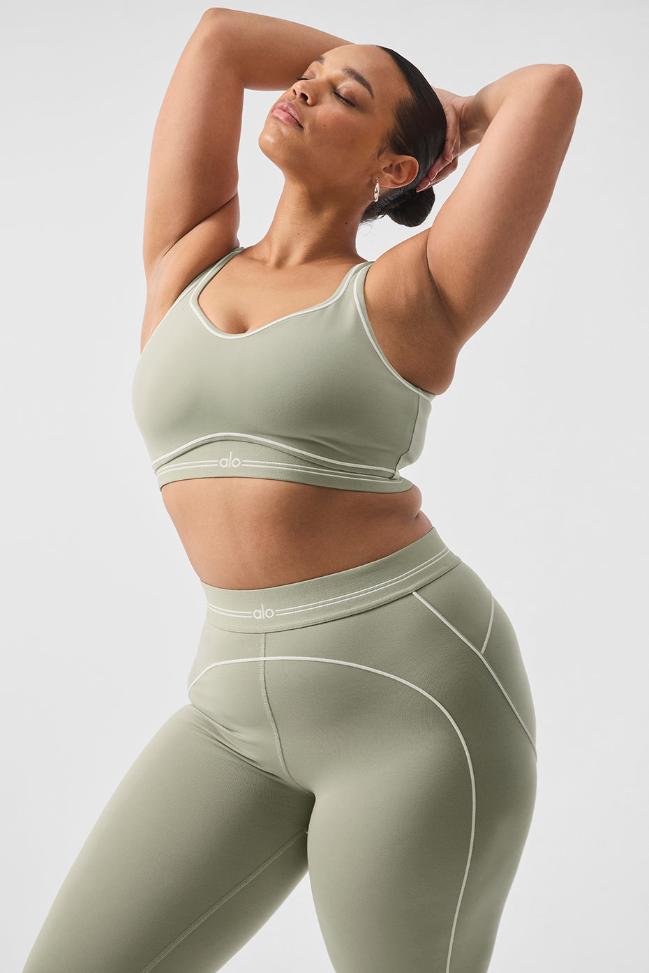 Way too cute to cover up. This bra features contrasting stitching, a gently-scooped neck and a low back, all done in our signature Airbrush fabric for a soft and comfortably compressive fit. It’s perfect for medium-intensity workouts like dance, yoga or Pilates, and even cuter with the matching Heart Throb Legging.