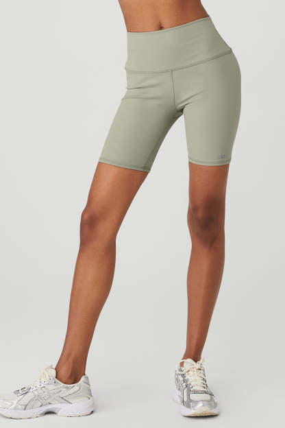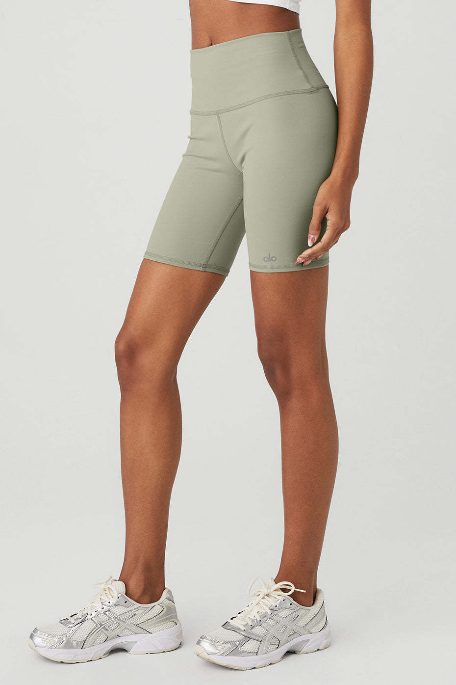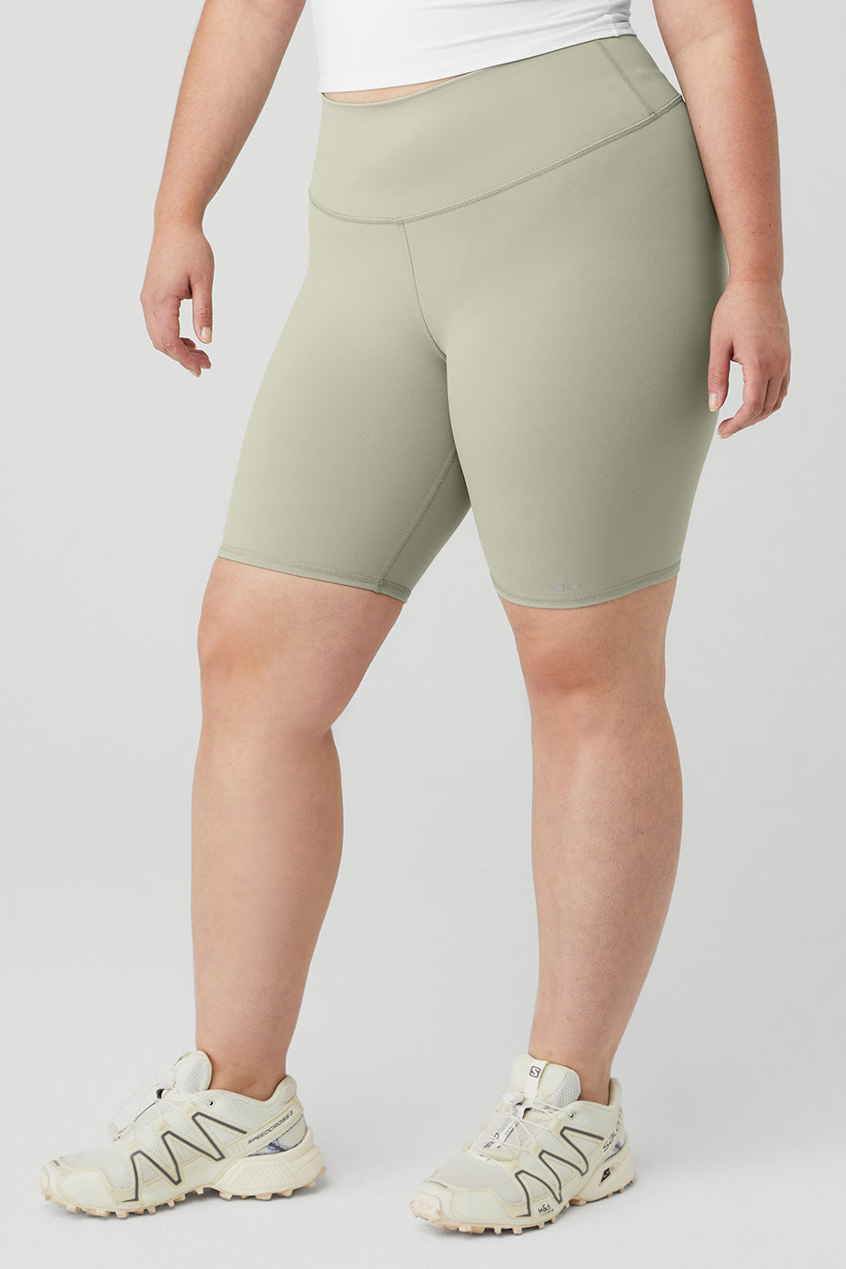 Meet the ultimate short for practice and pavement: the High-Waist Biker Short, made in our signature lifting, sculpting Airbrush fabric, with a high waist, moisture-wicking technology and 4-way stretch that moves with you. Equal parts forward and functional. Wear with a fave bra layered under a cute cropped hoodie or pair with an athelo statement tee.