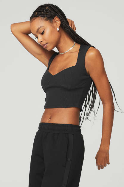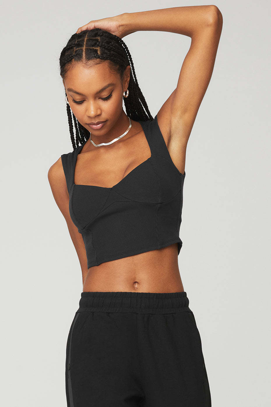 Pin up-inspired perfection for on the mat or off duty. Keep things classic in the Ribbed Sweetheart Short Sleeve, with a balconette bust, short sleeves, contoured front seams and built-in cups for light support. Match it up with Goddess Leggings for a complete look or rock this ribbed top solo.