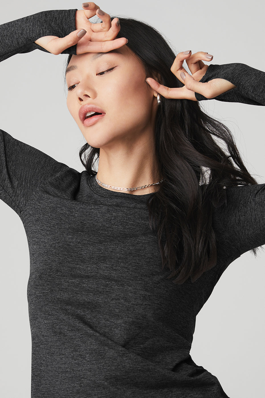 Bring the feels. The athelosoft Finesse Long Sleeve is made with soft performance jersey and has a comfy, relaxed silhouette, so you can stay cozy and on-trend from yoga to lounge. Looks so good layered under jackets.