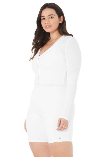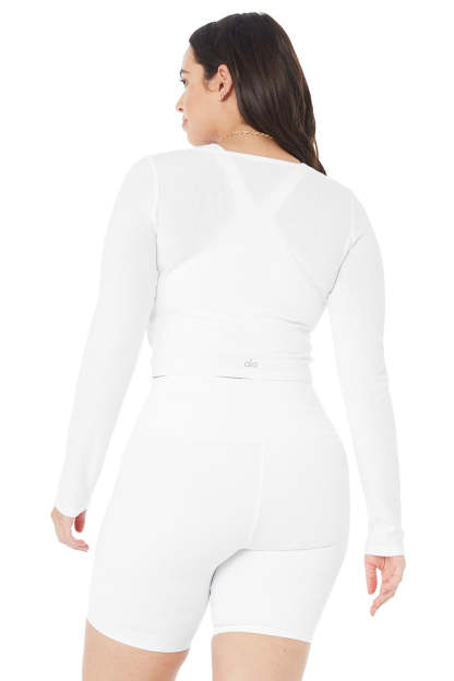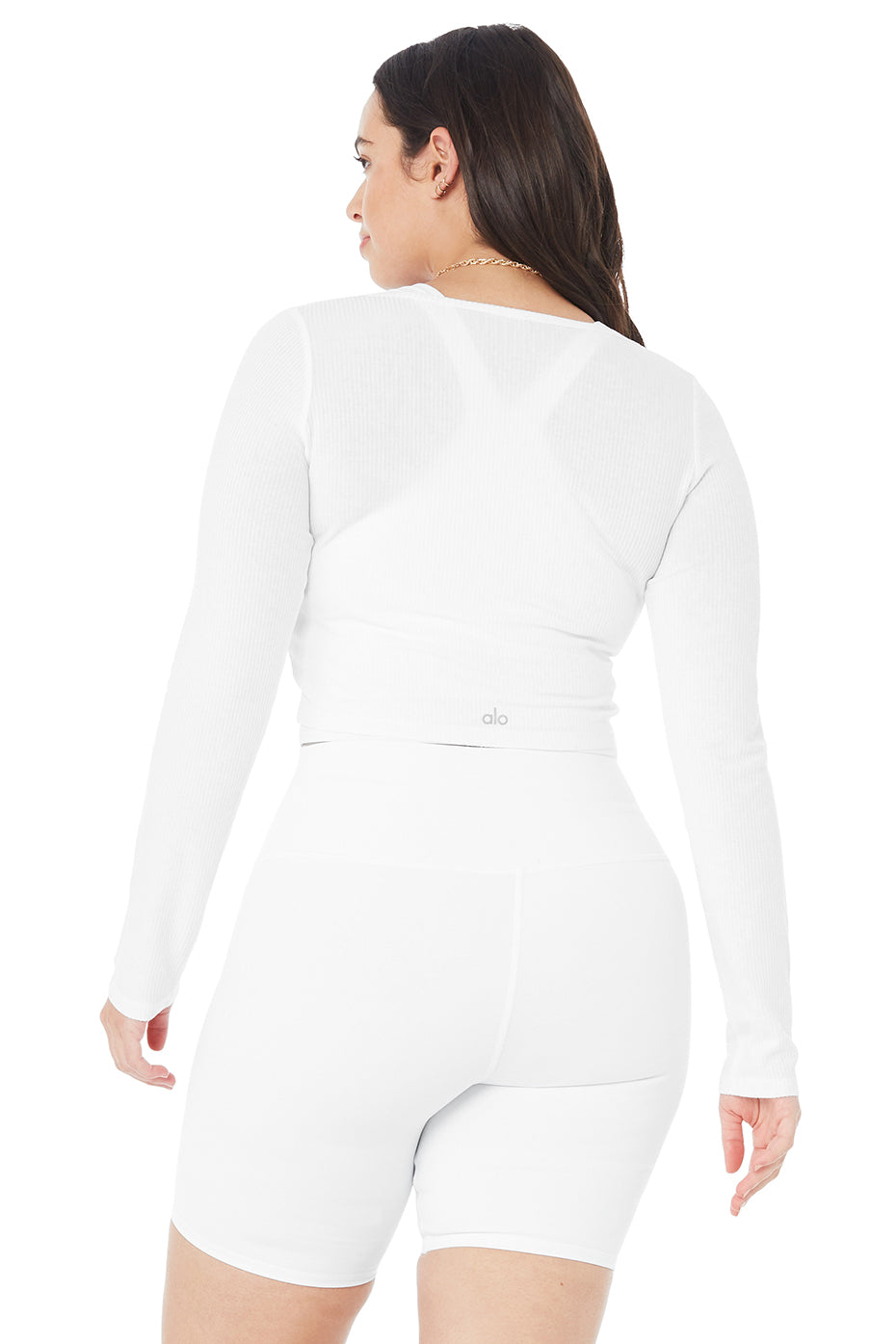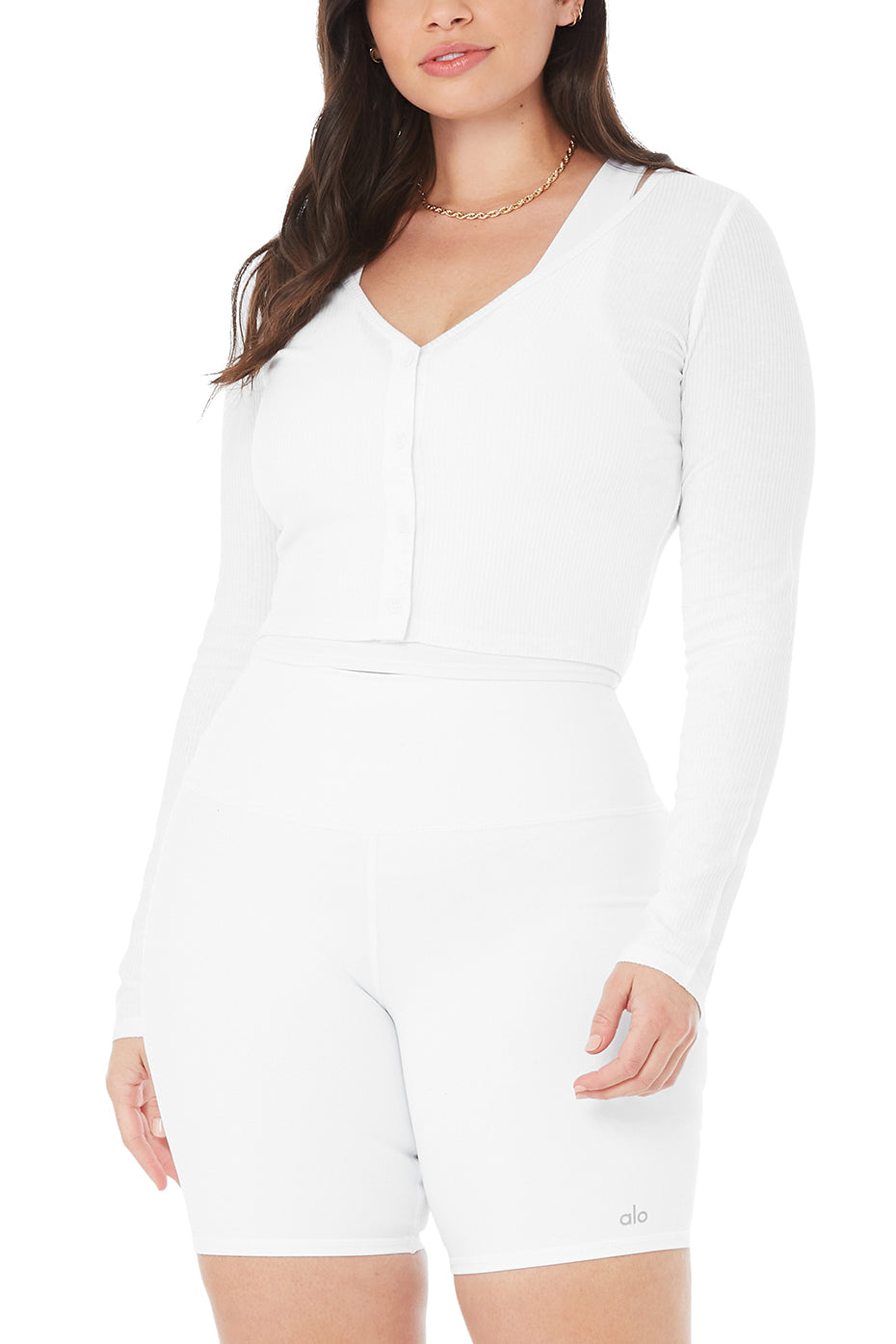 An ultra-cropped cardi with a pretty low V? Yes, please. The Ribbed Cropped Whisper Cardigan has a soft, lightweight feel and front button closure. Wear it with your favorite athelo bra and high-waist legging.
