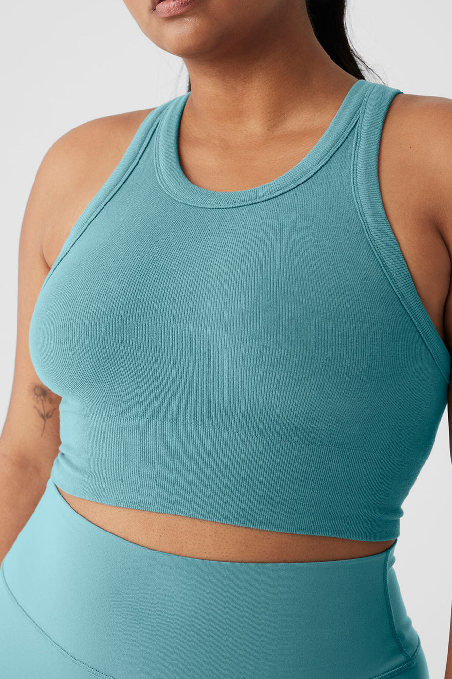 Hello, new favorite tank. The Seamless Delight High Neck Bra has an on-trend high-neck silhouette and soft, smooth feel, so you can wear it from practice to pavement without missing a beat. Pairs well with everything athelo.